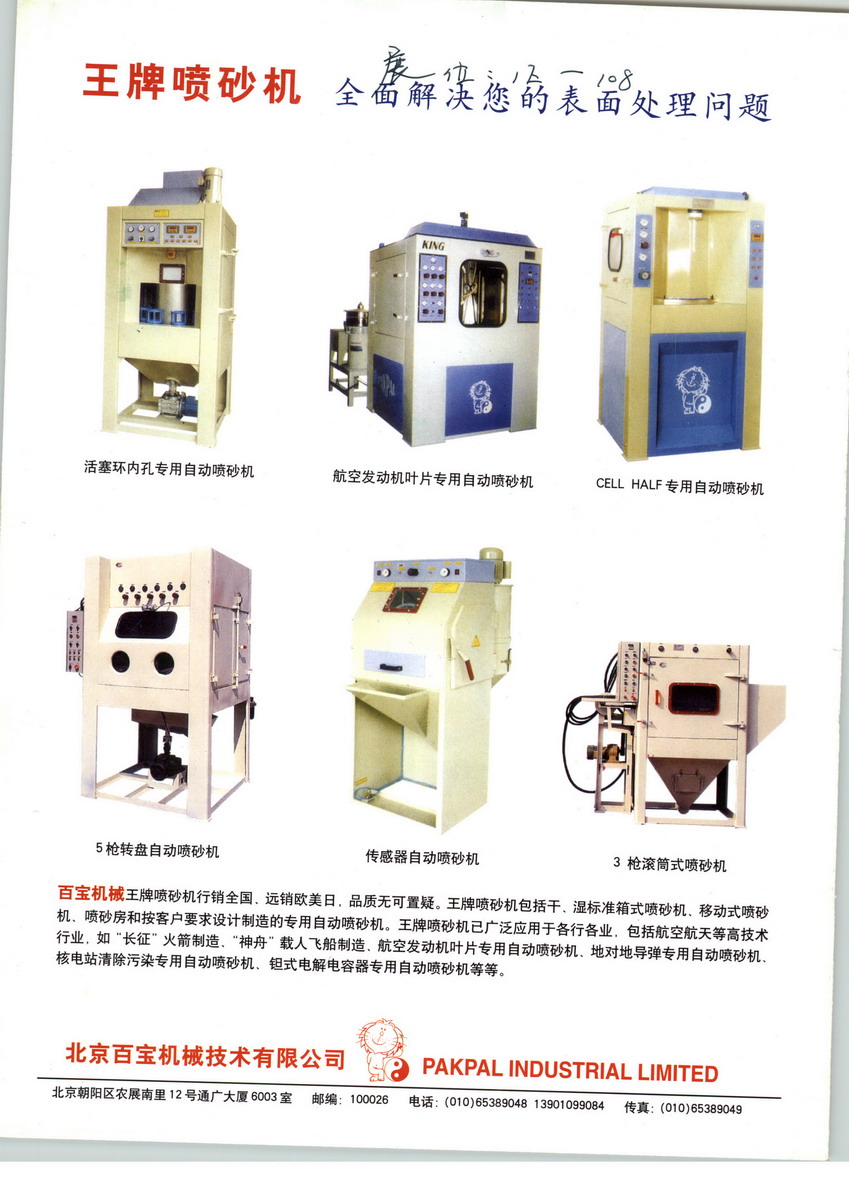 北京百宝机械技术有限公司主要经营标准型干、湿喷砂机/专用自动干、湿喷砂机/空压机及压缩空气干燥机、过滤器/压缩空气系统设计、工程、设备维修保养、备件供应等专业服务。