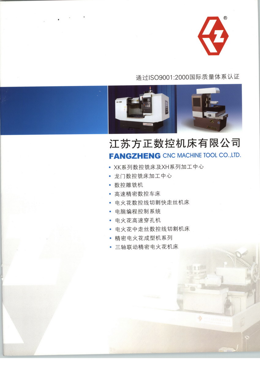 江苏方正数控机床有限公司是生产数控机床的专业厂家,工厂占地面积40000平方米,厂房面 积30000平方米,固定资产6000多万元,拥有大批工程技术人员从事产品开发研制和质量控制,机加工设备齐全,检测手段完善,拥有大型龙门导轨磨床、 龙门刨床、大型坐标镗铣床等一百多台精良加工设备。拥有英国雷尼绍干涉仪、万能工具显微镜、动平衡校验仪等检测设备。本单位通过ISO9001:2000 国际质量管理体系认证合格。企业自创办以来,长期与国内科研机构和高等院校合作致力于不断开发和研制出结构完善、品质优秀、功能齐全的产品。始终坚持“科技创新、精益求精、环保节 能”的科学理念,研制出具有方正特色的新产品。凭借优越的产品性能,完善的售后服务,赢得广大用户的一致好评。产品遍布全国三十多个省市和自治区。远销欧 美、东南亚、中东等世界各地。目前本公司数控机床广泛应用于汽车行业、国防军工、航空航天、轨道交通等重点行业核心制造领域。产品质量和信誉得到了客户们 的肯定和赞赏。本公司主要产品有:DK77系列电火花线切割机床、DX系列雕刻机、XK系列数控铣床、XH系列数控加工中心、D703系列高速穿孔机、D71系列电火花成型机等十大系列六十多个品种。尊敬的客户,让我们共同合同,增进了解,携手并进。为民族工业发展共同努力,全力打造国内知名品牌,共创世界知名公司。