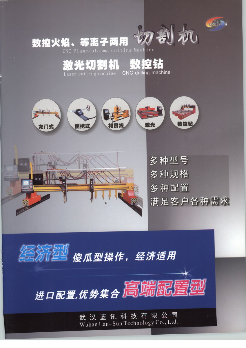 我公司教授曾承担过国家及国土资源部的多次重点科技攻关项目,主要项目有:海底遥控取样钻机(国家863项目)、无线传输钻探参数监测系统(国土资源部十五攻关项目)、钻探孔内参数动态采集系统(地矿部95攻关项目)、凿岩机变频控制器(地矿部95重点攻关项目)等,多个项目都曾荣获国家、地矿部科技成果奖。我公司主要科技人员多为具有多年独立开发经验的人才,曾开发过的项目涉及:智能交通车载设备(车载GPS、车载无线广告屏、电脑报站器)、数控设备(数控切割机、数控冲床)、通讯产品(公共IC卡电话系统、无线PHS系统)等。数控切割机已越来越广泛地应用在铁路、机械制造、金属构件、压力容器等行业。由中国地质大学机电学院监制 武汉蓝讯科技有限公司生产的数控火焰等离子两用切割机是一种新型、高效节材的高效切割设备。它适用于各种厚度的碳钢、不锈钢以及有色金属板材、管材及轴类的精密切割下料,凡要求加工表面粗糙度Ra为12.5μm的工件均可一次落料成功,从而达到了缩短工期、降低成本的目的。该产品已在很多城市投入使用,因产品质量可靠、性能优越、价格低廉、服务周到受到了用户的一致好评。