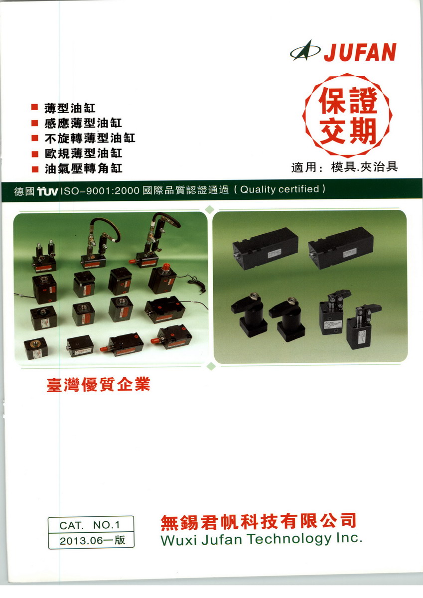 本公司经过多年的研发创新,与不断的对品质的追求在台湾不仅是气动液压元件领先企业,产品更是远销欧、美、日等工业发达地区与国家。目前君帆公司已拥有两个专业化生产基地:其一位于台湾,成立于1979年;其二位于江苏无锡 成立于2003年,我公司一直秉持“品质第一,技术创新”的宗旨,多年来长期与各大科研院及专业机构进行多项产品开发,不断追求产品的品质完美及精益求精。除了对品质的严格管理及对技术创新持续的努力外,公司还不断的投入软、硬件加工设备、基层技术人员培训与研发创新人才的培训。同时更严格要求公司员工必须做到“诚信务实,以客为尊”的工作态度,全力为广大支持、爱护君帆公司的客户群体服务。君帆科技有限公司为专业从事气动元件、液压元件、暨电控气动液压系统设备设计、制造、 销售、服务于一体的企业。 本公司经过多年的研发创新,与不断的对品质的追求在台湾不仅是气动液压元件领先企业, 产品更是远销欧、美、日等工业发达地区与国家。 目前君帆公司已拥有两个专业化生产基地: 其一位于台湾,成立于1979年;其二位于江苏无锡 成立于2003年,我公司一直秉持“品质 第一,技术创新”的宗旨,多年来长期与各大科研院及专业机构进行多项产品开发,不断追求产 品的品质完美及精益求精。除了对品质的严格管理及对技术创新持续的努力外,公司还不断的投 入软、硬件加工设备、基层技术人员培训与研发创新人才的培训。同时更严格要求公司员工必须 做到“诚信务实,以客为尊”的工作态度,全力为广大支持、爱护君帆公司的客户群体服务。