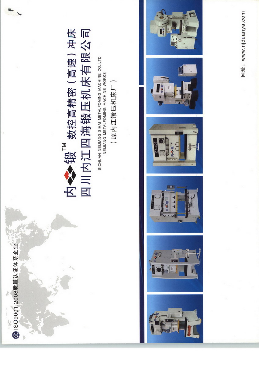 四川内江四海锻压机床有限公司由原内江锻压机床厂改制而成,是农业部、省政府授予的农业产业化“龙头企业”、省“小巨人”计划企业、银行信誉“AAA”级企业、中国出口产品“质量信得过单位”等多种荣誉于一身的四川四海集团之子公司。该公司始建于1958年,是中国锻压机械行业定点生产开式压力机和研制精密冲载液压机的专业厂,是开式压力机和精密冲载液压机国家专业技术标准的起草单位。已获自营产品进出权。企业占地19万平方米,拥有一批精练的技术工人和中、高级技术人员、工程师专门从事各类压力机的开发、设计、生产。其产品多次荣获市、省、部优。主要生产J23、J21系列,JG21、JE21、JF21系列,J21S、JG21S、J25、JA84、Y26系列等八十余种规格的优质产品。