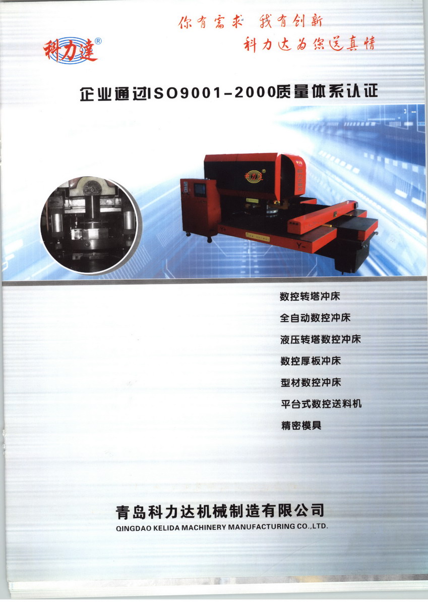 青岛科力达机械制造有限公司位于美丽的青岛西海岸,中国优秀的旅游城市——胶南,204国道和同三高速贯穿南北,济青高速南线贯穿东西,东临青岛前湾港,北靠青岛国际机场,目前至青岛的跨海大桥和海底隧道即将通车,海陆空交通极为便利。青岛科力达机械制造有限公司成立于2001年,历经十年的发展,已经成为独立研发、设计、制造、销售数控机械、纺织机械的机械制造公司。数控冲床产品广泛适应于棉纺、汽车、柜类、箱类、筛网、制盖、制罐生产线、仪表五金、太阳能热水器、电池铁板、装饰面板、粮食机械、自行车配件、仓库、金属家具、消声板、灯具、厨房设备等冷冲压加工行业。产品销售、服务网络遍及全国,并出口印度、巴基斯坦、孟加拉国、蒙古、俄罗斯等国。公司技术力量雄厚,设备先进,广泛引进国内外先进技术和设备,集科研、生产、销售为一体,公司的质量管理体系在2002年通过了ISO9001—2000质量体系认证。公司连续多年获得山东省“重合同守信用”、“质量信得过单位”、“诚信民营企业”等称号。公司重视“科技兴企”不断加大研发资金投入和人才的引进与培养,尤其注重技术开发中心的建设,配备了一流的硬件设施、CAD软件开发系统,能够承担高水准的产品研发项目,公司与山东科技大学联合成立了科研开发基地,使双方在课题研究、成果转让、人才培训、信息沟通、资源共享等方面互惠互利,实现了产、学、研一体化的新产品开发模式,有效缩短了产品研发周期,能够及时应变,牢牢地占据市场主动权。公司坚持“科学技术是第一生产力”的方针,坚持走“以人为本”,“科技兴企”的道路,贯彻“产品与名牌竞争、质量同国际接轨”的企业方针;坚持“市场为灵魂、质量为生命、科技进步为动力、效益为目的”的企业理念;以一流的品质、合理的价格、优秀的服务、全面推行“用户满意工程”。公司在国内已设立了16个售后服务站,在山东、浙江、江苏、河北、辽宁等地已设办事处。各办事处产品配件均有现货,售后服务人员装备精良,随叫随到;并按公司要求定期 走访用户。了解产品在用户的使用情况,进行及时反馈。我公司的售后服务工作得到了全国各地用户的好评。售后服务人员负责公司新设备的安装、调试、人员培训工作。面对国内外市场带来的机遇,我公司愿以锐意进取的开拓精神,同天下有识之士精诚合作、并驾齐驱、共创辉煌。科力达公司期待您慧眼独具!