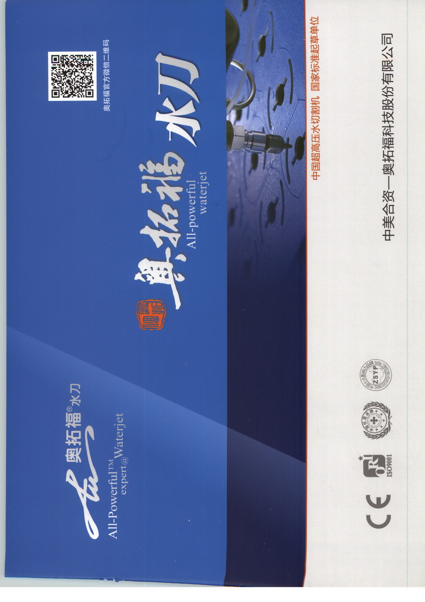 中美合资——沈阳奥拓福科技股份有限公司成立于2006年5月19日,2012年4月26日变更为沈阳奥拓福科技股份有限公司。公司位于风景秀丽的沈阳市浑河南岸浑南经济技术开发区浑南东路15-1号,公司直接投资股权总资本6800万元人民币。是集超高压水射流技术研发与应用;数控超高压水射流切割机整机及配件、数控超高压清洗设备及配件生产为一体的高新技术创新企业。目前已形成了6大产品系列150多种型号的产品系列。在国内各主要城市设立了20多家分支机构或办事处,除在美国设立了子公司外,还在澳大利亚、韩国、印度、中东及东欧地区派驻了常驻代表,其产品覆盖全国,远销海外。公司产品先后获得过“中国驰名品牌”、“中国优质名牌产品”、“中国水切割机行业最具影响力品牌”、“全国质量合格评定用户满意十佳品牌”等殊荣。2011年企业产品获得ISO9001质量体系认证。沈阳奥拓福科技股份有限公司配备有人员充足,结构合理的技术研发团队。公司共有工程技术人员近30人。其中国家级高级工程师2人,博士生学历2人,硕士研究生学历6人,本科生学历16人。其开发研究成果已获得20余项发明或实用新型技术专利,并广泛地应用于产品的生产当中。作为《高压水射流》国家标准起草单位,起草的相关标准已于2011年1月14日发布,2011年7月1日正式生效。“工欲善其事,必先利其器”。沈阳奥拓福科技股份有限公司拥有种类齐全、工艺先进的各类数控铣、刨、车床,大型剪板、压板机床,立(卧)钻床,数字激光检测仪等机械加工及检测设备共计90多台(套),设备原值1500余万元。可满足对产品各类元器件的精确加工以及对产品各环节的质量、技术检测、数据分析和图像处理要求,从而保证了产品的优质品质。沈阳奥拓福科技股份有限公司全体员工正秉承“勤奋、寻找、挖掘、创造”的文化主题,树立“科技孕升产业、严谨落实创新、创造客户价值”的技术宗旨和“培育团队价值、升华产业境界、放大产业空间”的经营理念,发扬“热忱服务、雷厉风行,客户至上、一诺千金”的工作作风,立身北方,放足全国和国际市场,围绕核心能力产业,不断拓展市场空间,开拓创新,务实进取,大步向规模集聚富有神圣产业信念和社会责任感的全新产业集团迈进。