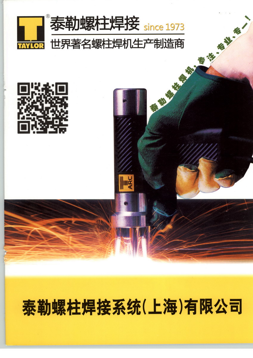 英国泰勒螺柱焊接系统有限公司是有三十多年历史的世界著名螺柱焊接设备设计制造厂家。泰勒产品包括电容放电(储能)式螺柱焊机、拉弧式螺柱焊机、CNC全自动螺柱焊接系统。泰勒产品焊接范围:螺栓直径1-25mm 泰勒产品焊接螺栓材料范围:碳钢、不锈钢、铜、铝合金和镀锌材料螺栓,螺柱,保温钉及建筑锚栓等。 泰勒螺柱焊机特性:螺柱焊接技术世界领先;焊接方便快捷; 不需复杂的传统焊接工艺如钻孔,攻丝,手工焊接及大量焊后处理;焊接强度高;大大提高生产效率,改善产品质量,降低生产成本并实现产品结构的优化。泰勒螺柱焊机产业用户行业:电气、电子、锅炉、电力建设、装饰与家电、造船、电梯、开关设备、变压器、铁路、电器柜制造、建筑业/钢混结构建筑、耐火材料安装、桥梁工程、环保和消防设备、医疗机械、容器和罐体制造、汽车,火车车辆/运输技术,钣金加工、标牌制作,泰勒公司自进入中国以来,已为诸如上海大众、上海三菱电梯、济南锅炉集团、ALSTOM变压器、上海贝尔阿尔卡特等数百家客户提供了优质的焊接设备和周到的售后服务。我们已于2003年4月在上海成立外商独资企业---泰勒螺柱焊接系统(上海)有限公司。泰勒(上海)公司备有千万件各种焊接螺钉,质量严格符合国际标准ISO13918,ISO14555。北京,上海,广州三大配货中心能满足你的各种需求。我们坚持“服务第一,产品第二”的服务理念。我们提供的不仅是优质的产品,我们更愿意向你提供顶极的服务。 英国厂家直销,价格优惠,服务周到一定能满足你的需要。