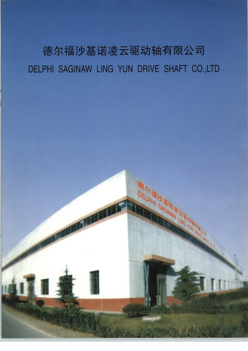德尔福沙基诺凌云驱动轴有限公司是由美国德尔福中国有限责任公司与河北凌云工业集团有限公司合资成立的公司。公司的经营范围是生产汽车用等速半轴及其零件,销售本产品。公司位于河北省涿州市,距北京市70公里,距保定市75公里,交通便利。 1989.03 河北凌云机械厂开发天津夏利轿车前驱动轴 1993.11获得国家新产品认证 1993.12 首家为天津夏利轿车配套供货 1994.05 开发长安铃木轿车前驱动轴 1995.11 德尔福沙基诺凌云驱动轴有限公司成立 1996.01 奥拓轿车配套供货 1996.05 开发捷达轿车前驱动轴 1998.02 通过QS9000质量体系认证 1998.06 开发一汽小红旗前驱动轴 1998.11 开发富康轿车前驱动轴 2000.07 通过VDA6.1认证 2000.08 捷达轿车配套供2001.07 通过ISO/TS16949质量体系认证 2001.11奇瑞轿车配套供货 2001.12通过ISO14001环境体系认证 2001.12 昌河北斗星配套供货 2002.05一汽大众宝来供货 2003.03 通用金杯T-truck供货货