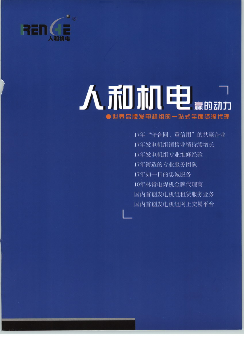 人和机电成立于1988年,是致力于提供世界著名品牌发电机组、电焊机及技术服务为主的专业公司。经过18年的发展,拥有4个子公司、4个办事处、1个电子商务中心,成为集发电机组的制造、销售、租赁及设备的机房设计、相应配套工程、维修服务与零配件供应于一身的同行业最大的供应商之一。北京人和世纪机电设备有限公司,主要经营人和/康明斯系列柴油发电机组;人和/大宇系列柴油发电机组;人和/富豪系列柴油发电机组,公司注册资本未知,我公司的办公地址位于中国的首都,政治、文化中心北京,中国 北京 北京市 朝阳区东三环北路3号幸福大厦A座1205室,我们有最好的产品和专业的销售和技术团队,我们为客户提供最好的产品、良好的技术支持、健全的售后服务,北京人和世纪机电设备有限公司是北京柴油发电机组行业知名企业,如果您对我公司的产品服务有兴趣,请在线留言或者来电咨询。