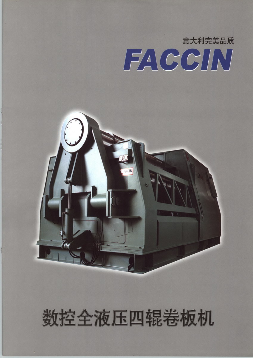 FACCIN公司是专业生产数控卷板机、型弯机、封头旋压机和数控法兰机等锻压成形设备的世界一流厂家;FACCIN 公司位于意大利北方工业区的布雷西亚,总占地面积约 80,000 平米。在欧洲生产卷板机的厂家中,FACCIN 公司拥有多套世界最知名企业生产的大型加工设备,是唯一的一家在自己的车间里加工设备主要构件的设备生产厂家,做到真正的百分百意大利制造;从设计、材料切割、部件机加、结构焊接和设备总装,都是由FACCIN 公司经验丰富的专业工程师来完成,确保了每台设备的每个零部件在加工的全过程中保持高品质和高可靠。
