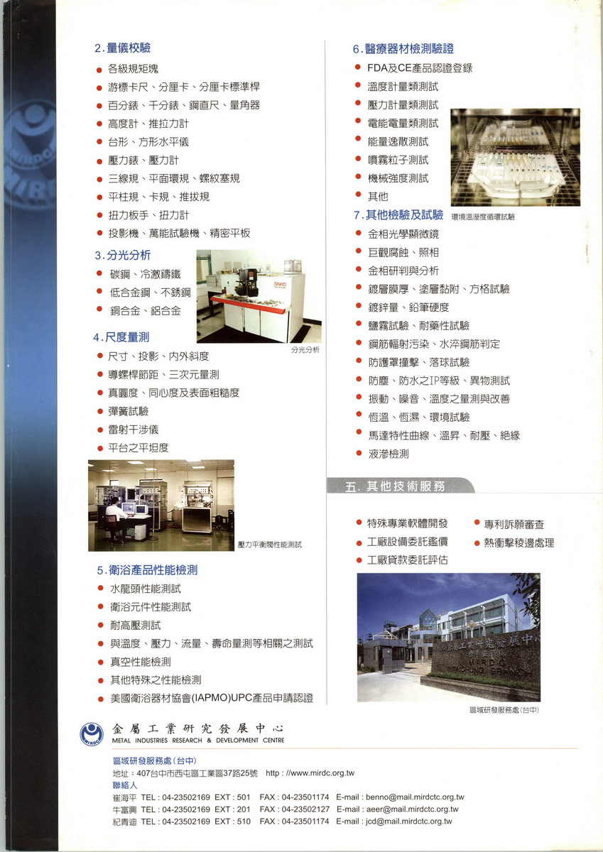 此外国内光电产品、车辆零组件等产业蓬勃发展,提供金属加工业另一技术转型舞台,因此金属中心加重精微与运输工具等产业所需之研发与服务之比重,投入高附加价值金属产品应用技术研发;例如发展轻金属製程技术,可应用于手机、笔记型电脑之镁合金机壳,以及汽机车零组件之轻量化等;推动绿色环保洗淨技术,研发超临界流体技术、成立超临界流体协会;推动精微零组件产业,建置精密模具/成形实验室等,研发精密微小金属零组件关键技术,并筹组台湾精微製造联谊会,台湾複合金属协进会等协助国内金属相关产品产业升级及转型,进而提升国际竞争能力。