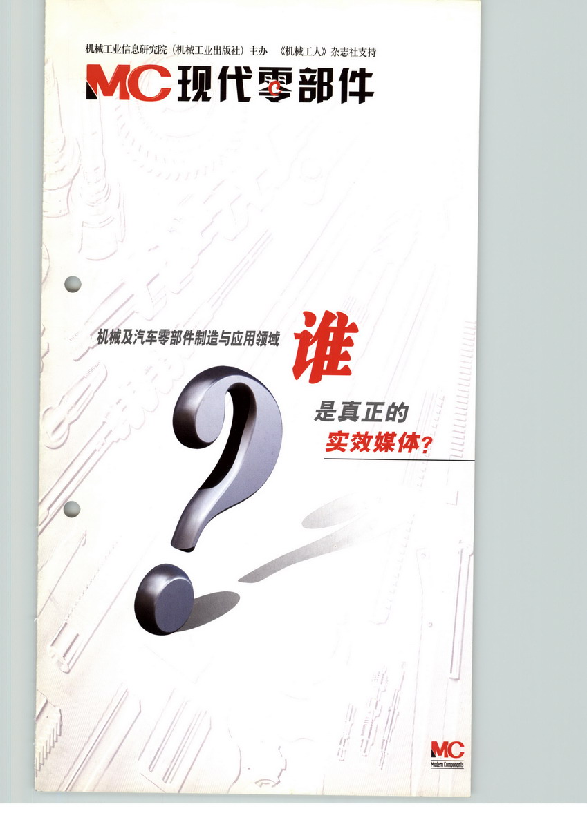 《现代零部件》是一本面向汽车零部件及机械零部件制造商、经销商、用户、服务商,以市场需求为导向,集信息、技术、产品、市场与管理为一体的综合性技术期刊。由机械工业信息研究院主办。深入介绍轴承、齿轮、液压、气动、密封件、紧固件等机械零部件及汽车零部件国内外先进制造技术、装备、产品和管理经验,充分提供机械零部件及汽车零部件行业的市场需求和发展方向预测、集成应用解决方案、检测设备及保证措施、国内外机械零部件及汽车零部件知名品牌等高效整合信息,是机械零部件及汽车零部件制造与应用企业决策层不可或缺的高端杂志。以机械零部件及汽车零部件制造商、经销商、用户、服务商中设计、制造、管理、营销、采购与维修等部门中、高级管理层为主要发行对象。