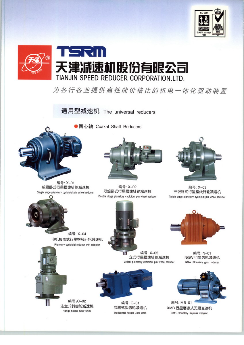 天津减速机股份有限公司(原天津减速机总厂)始建予1956年,是国家定点生产减速机、变速机的专业厂;是行星摆线针轮减速机和油浸式电动滚筒产品开发生产的发源地;是机械工业重点骨干企业;中国减、变速机行业协会理事长单位;原机械工业部机加工工艺样板厂。列为中国机械工业500家大型企业之一,天津市百强企业之一。