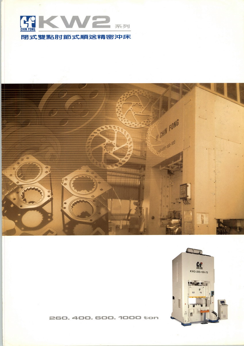金丰(中国)机械工业有限公司生产的锻压机械产品系以母公司的设计图纸、生产工艺和技术、管理体系为蓝本,与母公司进行同步生产压力机。自1996年投产以来,通过了出口产品质量许可证及ISO-9001:2000版国际品质认证。同时为迎接高性能、高自动化时代的来临,公司全部采用来自日本、台湾之大型、高效、精密之生产设备,并以此来稳定及提升产品品质,产品涵盖2400吨级以下开式、闭式、高速、冷热锻各种类型机械式冲床,主要客户有天津丰田汽车、南昌江铃汽车、章丘海尔、深圳富金、美国STAMTEC等公司。