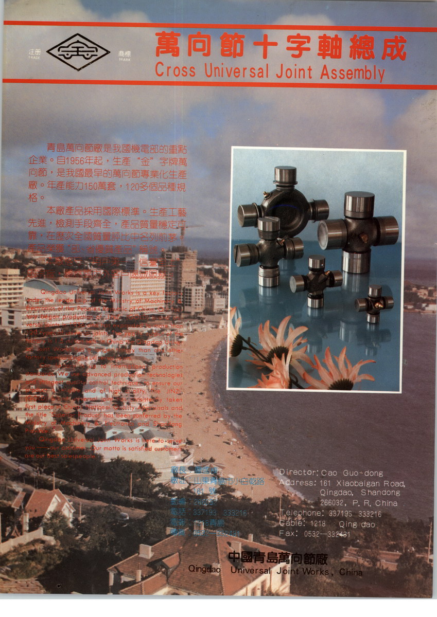 青岛万向节厂原址在过去的小白干路(现重庆南路),是上个世纪70年代初由原来的青岛机床电器厂和汽车零件厂万向节车间合并而成立的,大集体所有制,主要生产“金”字牌汽车万向节。