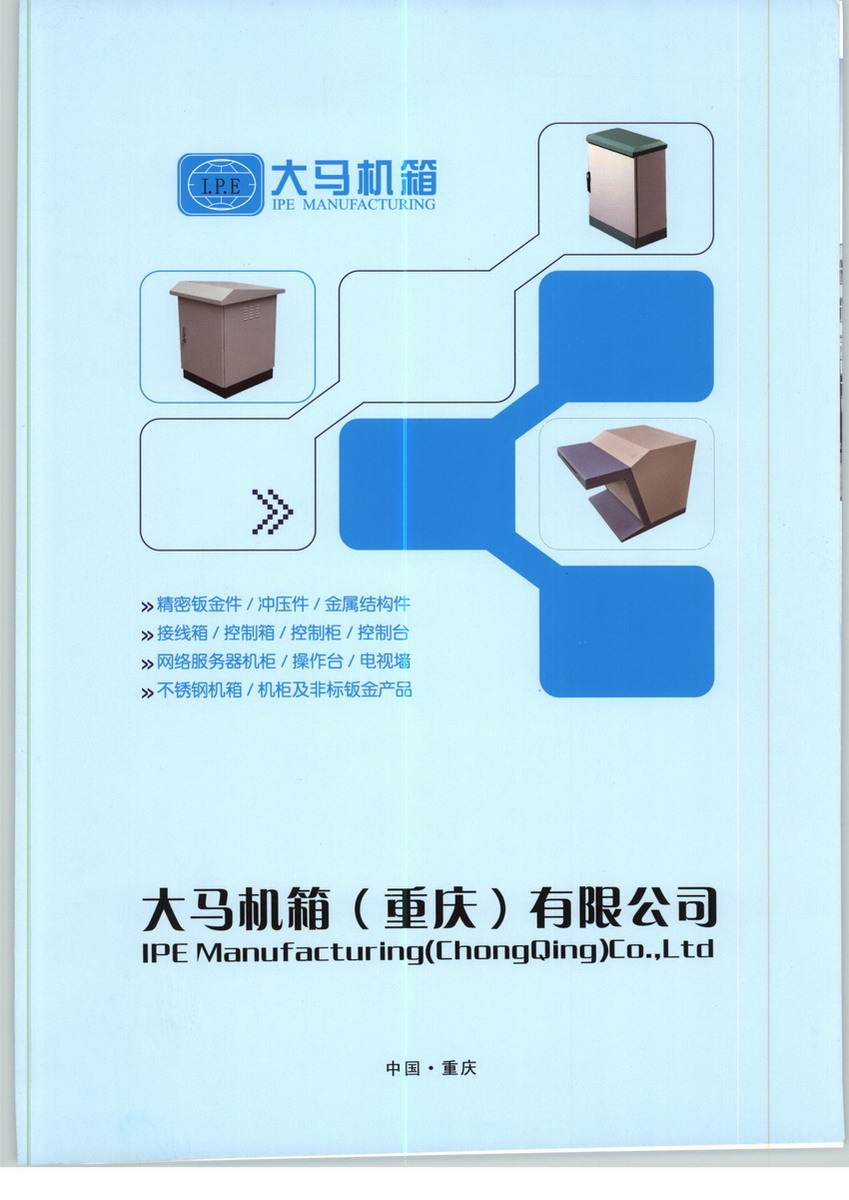 大马机箱(重庆)有限公司是由马来西亚IPE集团在重庆投资的公司;公司集钣金产品开发、生产、销售于一体,拥有德国进口数控冲孔、数控折弯、数控剪板及其它钣金加工的全套设备,专业设计、制造钣金机箱、机柜;产品广泛应用于工业自动化控制、仪器仪表、设备制造、电力、交通、能源、化工、冶金、环保、网络通信、广播电视、安防及房地产等行业;我公司已通过ISO9001:2008质量体系认证和产品ROHS检测,符合出口要求。