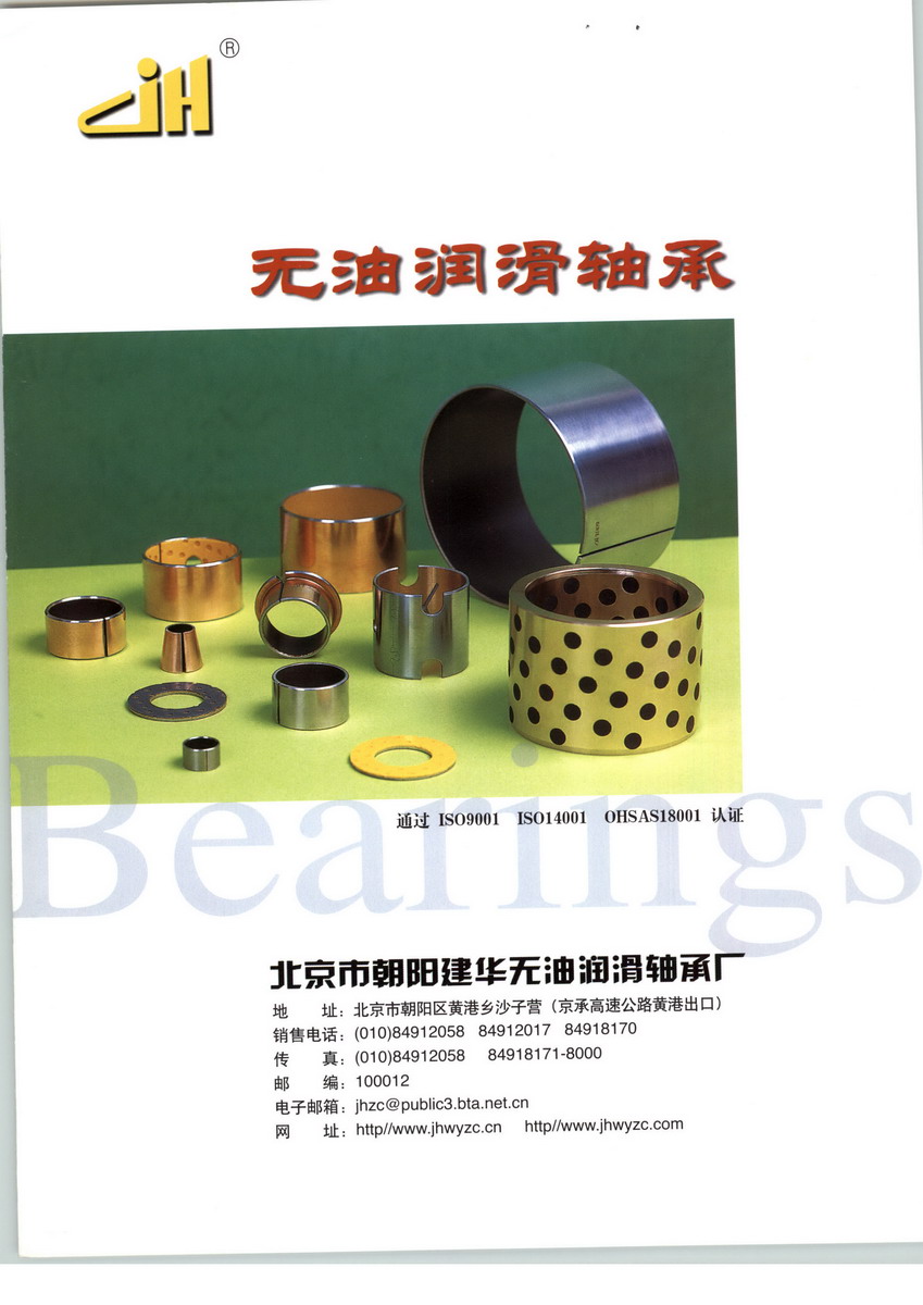 北京市朝阳建华无油润滑轴承厂是一家集体所有制企业,始建于1987年,经过二十年的投入和发展,企业现拥有材料烧结、轴承制品、机械加工三个主要生产车间,自滑动轴承生产、试验设备120余台套,年生产能力3000万元以上,资产总额870万元。企业占地面积11000㎡,其中建筑面积5000㎡,现有员工105人,其中专业技术人员9人。企业是复合材料滑动轴承的专业生产厂家,系全国滑动轴承标准委员会会员单位。