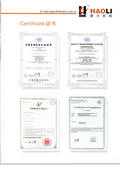 公司本着“以人为本、铭求质量、用户至上”的原则,公司已取得中国质量认证中心CQC的ISO9001:2000质量管理体系认证,以及国家级质量达标用户放心AAA级证书和CE认证证书。在产品研发、生产都严格遵循ISO9001质量体系规程进行严格管理的前提下,使“豪力”品牌的每一种产品都成为客户的首选。我司竭诚欢迎国内外广大客户光临指导并洽谈业务。