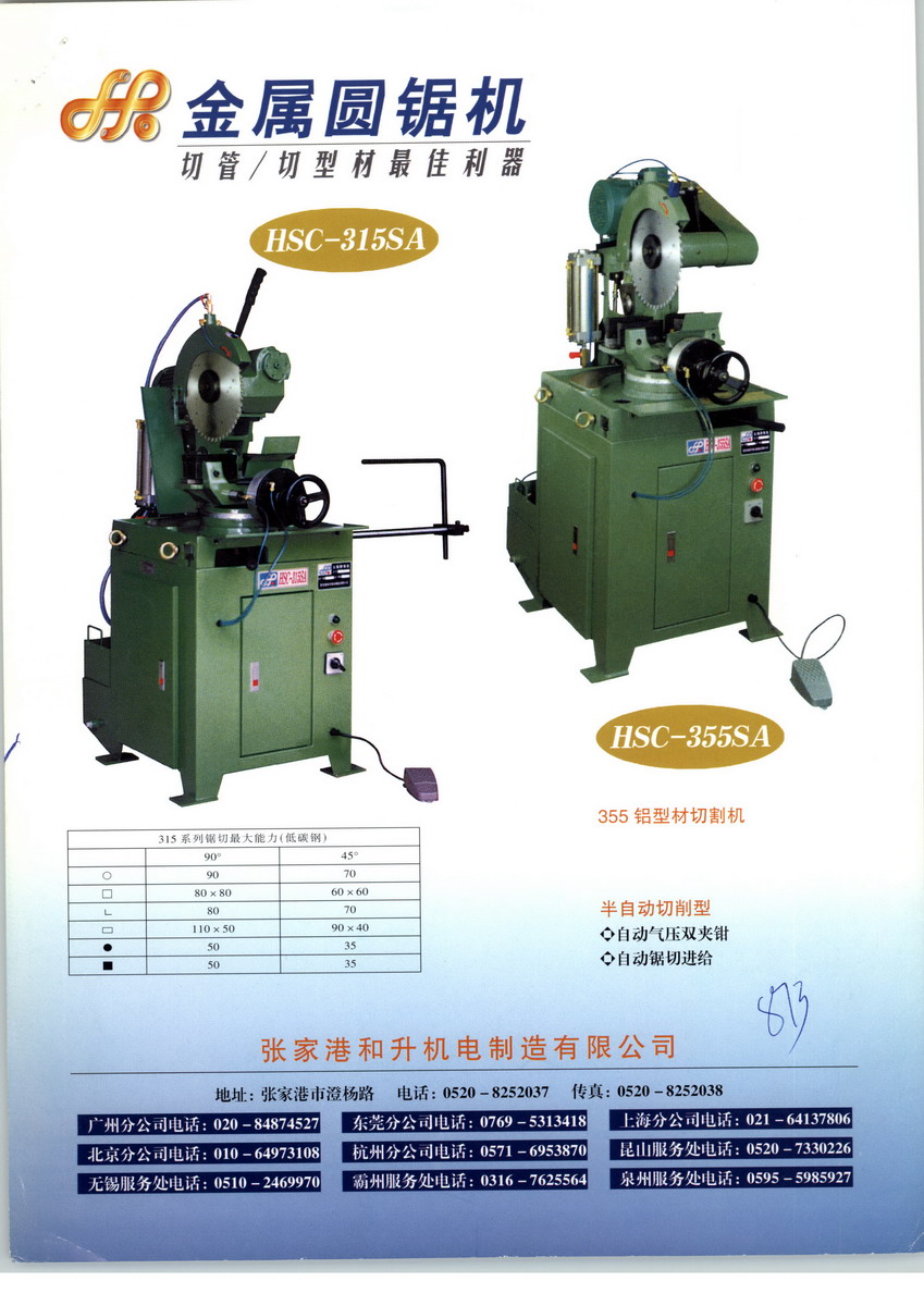 张家港和升机械制造有限公司,专业制造生产弯管机、金属圆锯机、管端成型机、自动焊接机等成套管类加工设备近31年。公司占地二万多平方米,建筑面积一万五千平方米,公司技术力量雄厚,生产经验丰富,系列产品已通过ISO9001:2000质量管理体系认证。