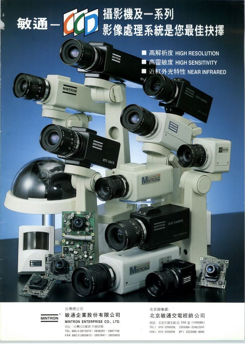 Mintron Enterprise Co., Ltd. based in Taipei, Taiwan was established in 1979 and is one of the leading CCD camera manufacturers in the world. It is with 3 decades of experience of manufacturing, designing, and selling cameras. Mintron’s cameras integrated with self-designed DSPs and are widely used in various fields, such as security surveillance, automatic optical inspection, aero-space, and medical research.