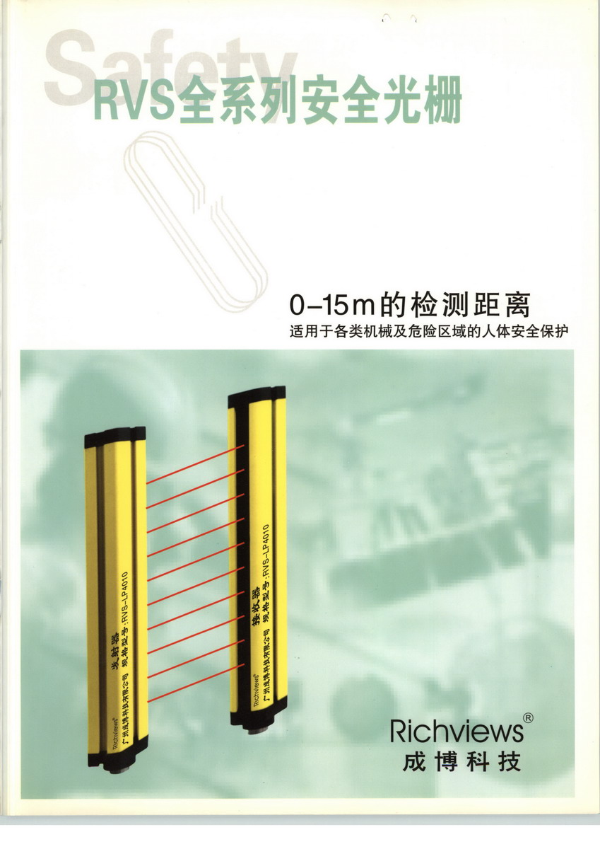 成博科技公司长期致力于全电脑工业自动化控制系统及工业安全光电产品的研发及应用,累积了成熟先进的技术、丰富的行业经验及精良的制造能力,力求以卓越稳健的品质、尖端的科技及完善周到的技术支持及服务合作于广大机械制造界。其中RVS系列安全光栅为机械制造企业提供安全产品和安全技术解决方案。 在自动化生产中,如冲压机械 、剪切设备等等,易造成作业人员伤害,而RVS系列安全光栅是通过发射极高频率的非可见光,产生保护光幕,当光幕被遮挡时,装置发出信号,控制具有潜在危险的机械设备停止工作或控制报警装置发出报警信号,以达到安全保护的目的。 欢迎与我们进行技术交流及业务洽谈,我们将随时提供优质的产品,先进的技术和完善的服务。您的任何业务需求,我们都将以专业的技术为您作出优质、合理、贴切的系统方案。