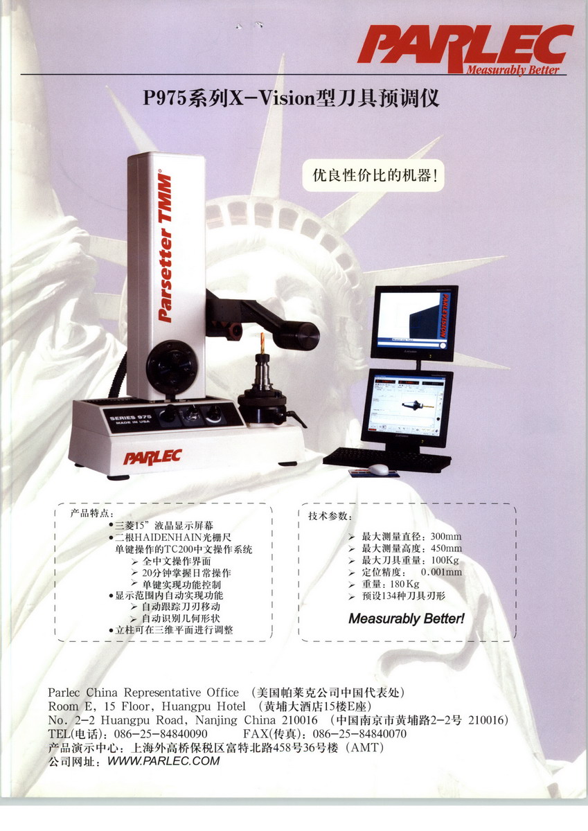 帕莱克公司成立于1948年,位于美国纽约州。生产区域占地超过 100,000 平方英尺。是北美生产刀具预调仪的厂家。致力于为您提供***精确、***实用的刀具测量设备。帕莱克公司发展的全球性销售、工程、制造和服务网络遍及北美、欧洲和亚洲、在全球拥有超过 750 家分销商。我们有能力向世界各地的用户提供***精密,***可靠的刀具测量设备——帕莱克刀具预调仪。