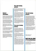 Schuler Presses UK is the largest company servicing the pressing industry in the UK and offers comprehensive services for mechanical and hydraulic presses made by Schuler and many other, Schuler owned press brands (*) as well as for presses made by other press manufacturers.Our customers are OEM automobile manufactures and their suppliers, appliance manufactures, forging companies, the defense industry, electric motor and lamination manufactures and general metal pressings companies.Due to the many years of Service and Sales experience within in the metal pressing industry Schuler UK's Field Service and Design Team is able to provide our customers solutions to install, inspect, maintain, repair, rebuild, and refurbish presses, press components and press automation equipment either on customer premises or in our own facility in Walsall.We supply our customers spare parts based on original equipment drawings and manufacture those spare parts here in England whenever possible.Test rigs for power press clutch & brake testing are set up in our workshop ready to receive customers clutch & brake units for insurance testing or testing following repairs or refurbishments.Our 1,100 square meter workshop is equipped with overhead cranes to lift 25 tonnes. The 70 meter long workshop allows us to set up entire presses and automation equipment including feed lines and levelers for run off press system as they will be installed then on our customers premises.(*) Schuler owned press manufacturing brands: Schuler, Mueller-Weingarten, Clearing International, Verson Wilkins, Wilkins & Mitchell, Bronx, Clearing, Bliss, Niagara, Spiertz, Beche, SMG, GMG, Hydrap, Schaefer, Schleicher, Erfurt, Eitel and Beutler.
