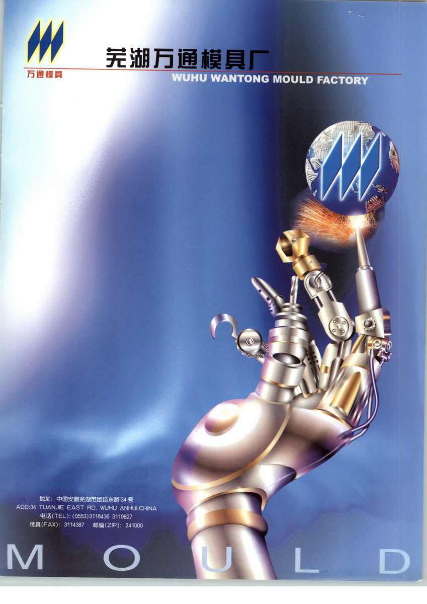 芜湖万通模具有限责任公司原芜湖万通模具厂,是具有四十余年生产历史的专业化模具制造企业,是中国模具工业协会会员,是中国模协定点的全国模具人才培训基地之一,也是中国模协144家重点扶持企业之一。拥有固定资产4000万元,并从瑞士、德国引进了三座标测量仪、光学曲线磨、数控镗铣床、电加工座标磨等十一台世界一流的精密模具加工设备,我公司采用先进技术CAD/CAM设计制造和MRPⅡ管理,并拥有一批专业技术人员,部分员工曾出国培训和学习,取得了较多的实践经验。近年来,我公司取得了令人瞩目的好成绩,YDL09电机定、转子自动叠压硬质合金级进冲模被评定为1999年度国家级新产品,DOL12-135多工位硬质合金级进冲模被列为向欧盟市场推荐产品,同时颁发了高新技术企业认定证书。