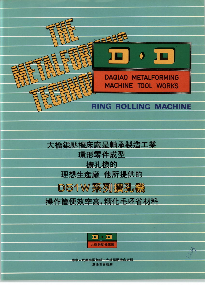江苏无锡,山明水秀,人杰地灵,商贾云集。无锡市大桥轴承机械有限公司(原无锡市大桥锻压机床厂)就座落在风光秀丽的太湖之滨,景色宜人的五里湖畔。苏锡公路在公司门口横穿而过,交通便捷,地理位置优越。公司设备精良,齐全,技术力量雄厚。多年来致力于锻压机械的研制与开发。主要为轴承,汽车,机械和化工管道行业服务的大桥牌D51型辗环机是我公司的主要产品,对轴承套圈,齿轮齿坯,管道法兰等环形零件,该机可以按您所需要的形状一次辗扩成形,生产率高,又精化了毛坯的精度,对减少车削余量,提高钢材利用率,对改善切削性能,提高锻件内部质量,都极为有效,有相当好的经济效益。