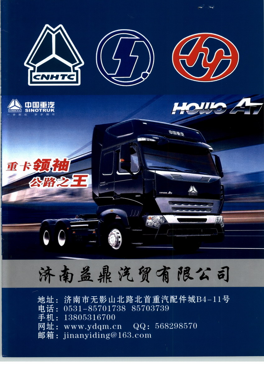 济南益鼎汽贸有限公司,始创于1996年,地处美丽的泉城济南,交通十分便利。主要经营斯太尔、斯太尔王、豪沃、黄河王子、欧曼等系列整车及驾驶室总成、内饰配件的专业批发零售业务。公司多年来不断努力进取、开拓创新、在同行业中树立了良好形象、赢得了广大新老用户的信任和支持。 公司本着以“质量求生存,以价格求发展”的原则,让客户在本公司获得实惠。公司热忱欢迎海内外新老客户的光临,让我们建起互惠互利的桥梁。我们的宗旨:以质量求生存、以价格求发展 我们的理念:效力社会、服务大众、精诚团结、共求发展。我们的目标:让客户得到最大实惠、让公司得到最快壮大。