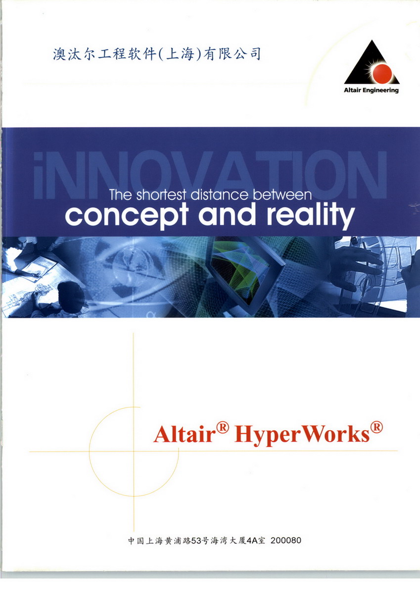 Altair Engineering, Inc是全球具有深厚工程技术底蕴的优秀CAE工程公司,在CAE建模、可视化、模拟、优化和工艺过程自动化等方面为全球的客户提供先进的产品工程方案,引领着工程技术的世界潮流。自1985年,作为一家计算机辅助工程(CAE)咨询公司创立以来,澳汰尔公司员工已逾700人,在美国.英国.德国.意大利.中国.日本.印度.瑞典等八个国家设有分支机构。Altair Engineering, Inc的HyperWorks工程软件系列在世界工业界得到了最广泛的应用和认可。 2001年Altair Engineering, Inc来到中国,成立了全资子公司澳汰尔工程软件(上海)有限公司。澳汰尔中国公司的成立标志着Altair Engineering, Inc在全球确立了更广阔的发展范围。Altair Engineering, Inc将全力为中国客户提供更有效.更直接.更全面的工程服务。