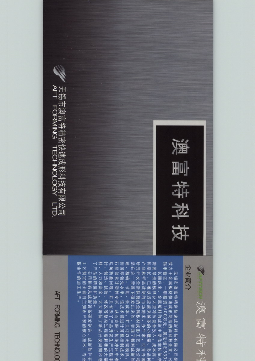 无锡市澳富特精密快速成形科技有限公司位于无锡市高新技术产业开发区。澳富特公司是一家致力于快速钣金件加工生产的高科技企业,拥有国内独家、国际领先的金属薄板数控快速成形技术。拥有完整的钣金件加工生产设备,可承接各种覆盖件、新型模具、快速钣金件类产品。公司拥有从成形设备研发制造、成形软件开发、成形工艺制定的圈套自主知识产权的核心技术。竭诚为您服务!
