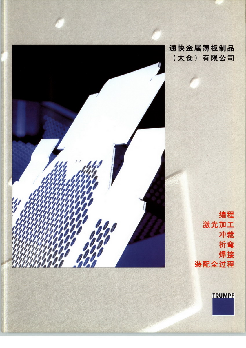我司为德国通快集团在华的技术支持、展示及培训中心,拥有通快集团生产的全系列专业激光加工设备,如5KW平面激光切割机,4KW三维数控激光切割与焊接机,4KW固体激光机器人焊接系统,及激光打标与激光修模机等,是目前国内技术进、装备***齐全的激光切割与激光焊接应用中心。 除此之外,本公司还拥有通快公司的数控冲床、数控折弯机及其它专业的钣金加工设备,公司提供专业与完整的钣金零部件生产与协作配套服务。
