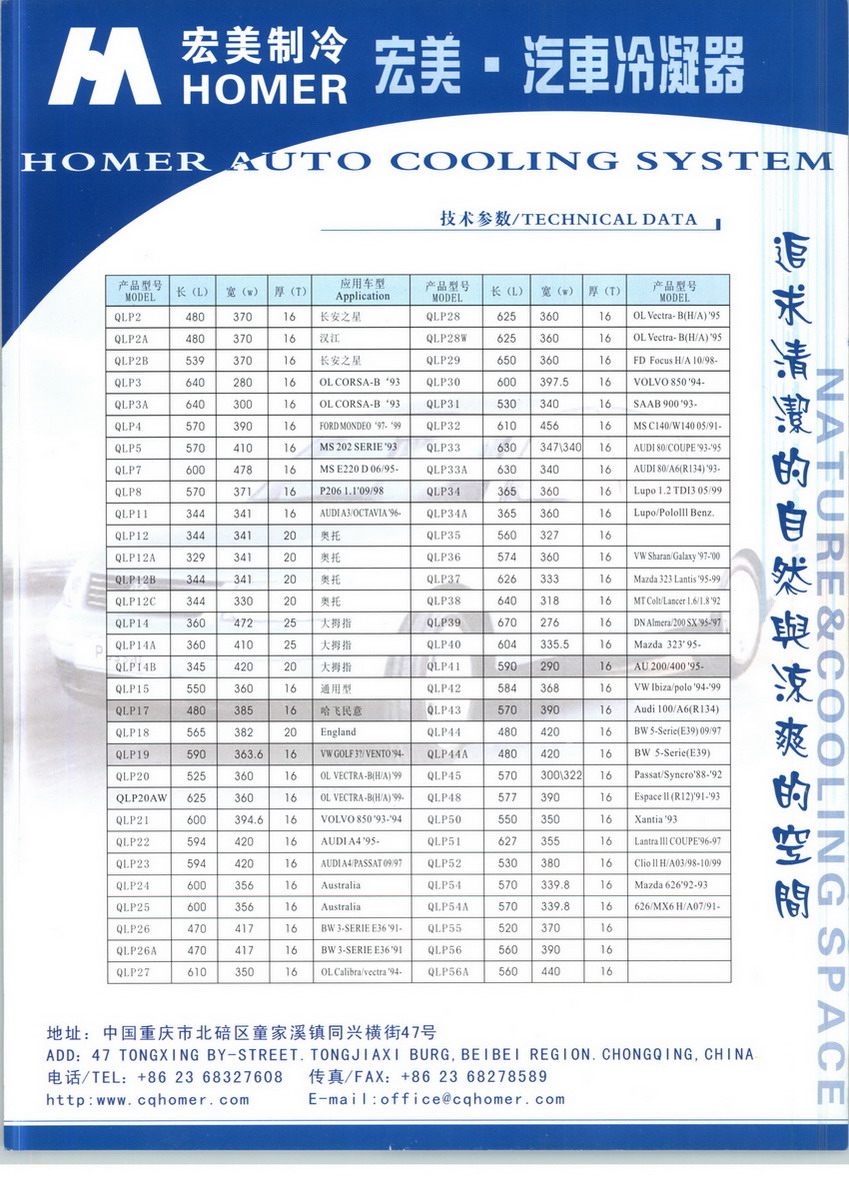 重庆宏美制冷设备有限公司始建于2001年,是一家高科技民营企业,目前旗下有重庆哈佛克沃汽车空调、重庆贺卡斯包装厂、重庆屹东机械加工厂三家全资子公司,公司位于北碚区童家溪镇,占地2.67万平方米,厂房2.5万平方米;目前员工300余人,工程技术人员40余人。公司是国内较早制造汽车铝质冷凝器、散热器等的专业厂家之一。目前宏美制冷公司主要业务为:设计和制造汽车散热器、冷凝器、暖风机芯体、蒸发器、机油冷却器、中冷器,摩托车水冷器、油冷器,渔船灯光冷却系统、LED灯光冷却系统等专业的铝质热交换领域产品。哈佛克沃公司主要业务为:设计和制造汽车及电动车驾驶仓温度管理系统、水温油温管理系统、电池组温度管理系统。公司经济实力较强,技术力量雄厚,设备精良,工艺先进,检测手段齐全。公司拥有先进的NOCOLOK连续隧道式氮气保护钎焊炉、翅片成型机、80吨高精度冲床、200吨高精度冲床,内翅片成型机,超声波清洗机、全自动装芯单元、半自动装配机、氦质谱检漏仪等专业制造设备。建立了多条可以生产管带式、层叠式、平行流式等各种类型热交换器的柔性生产线,具有年产各类汽车空调蒸发器、冷凝器、散热器、中冷器、暖风机芯、摩托车油冷却器、散热器等各类铝制热交换器200万台的生产能力。公司注重技术队伍和开发能力的建设,从全国各地聘请了多名有丰富经验的技术专家和高级技师,从高校招收了一批年轻的大学毕业生,形成了一只技术经验丰富、层次结构合理、勇于开拓创新、富有活力的研发队伍,其中博士学位两名,本科占80%以上,并与重庆大学材料科学与工程学院合作,成为“校企产学研究基地”。公司十分重视质量管理,在2009时完成了ISO/TS16949第三方认证。建立了专职的质量管理队伍,配备了生产开发所必须的检测仪器设备,有丰富质量管理经验的专业管理人员,在全公司内按TS标准要求建立、完善质量保证体系,使公司的开发、生产活动全部处于受控之中,为生产优质产品提供可靠的保证。公司完成了实验室的三期投资,拥有汽车空调性能试验台、水箱暖风性能试验台、震动试验台、压力脉冲试验台、噪音测试室、高低温实验箱、盐雾实验箱等各类试验设备。公司经过15年高速发展,目前已经拥有近两千款产品,客户遍布欧洲、美国、中东、澳大利亚、新加坡、台湾等国家和地区。直接配套或二级配套长安、长安铃木、长安跨越、北汽银翔、华晨鑫源、力帆汽车、东风小康、四川现代、广汽吉奥等十余家主机厂。重庆贺卡斯包装公司,能够设计制造各类重型、轻型包装箱及辅助材料和托盘,公司拥有空箱抗压测定仪、鼓风恒热干燥箱、耐破度测定仪、抗压缩测定仪、耐折度测定仪、戳穿强度测定仪、抗裂断测定仪等专业设备。公司愿以精良的产品、优惠的价格、及时的供货、周到的服务与中外朋友建立良好的合作的关系,欢迎全球的朋友咨询、到访!