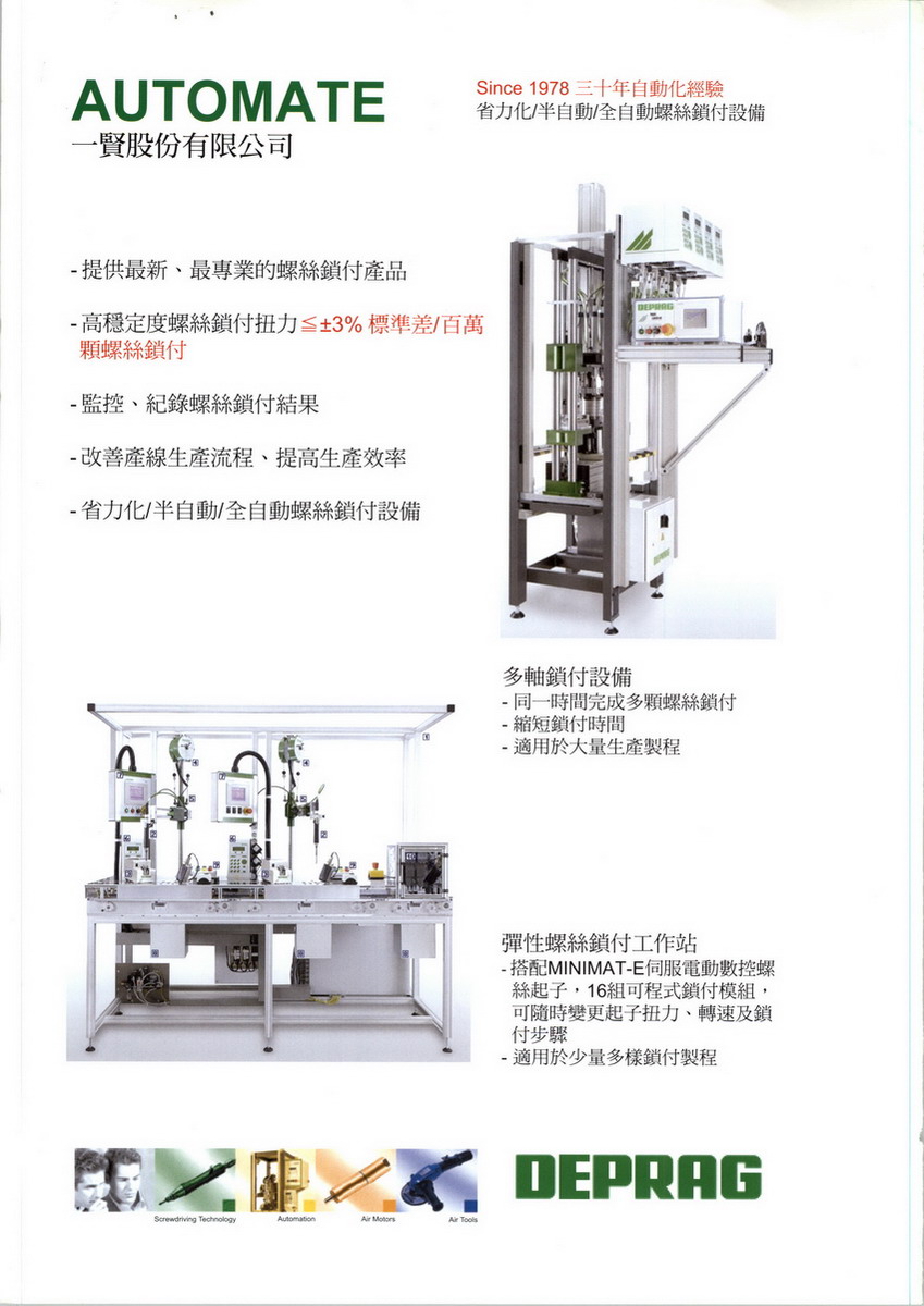 一賢股份有限公司成立於1978年,主要產品為:德國BOSCH REXROTH HAFNER氣壓配件、德國DEPRAG自動鎖螺絲機及氣動工具、德國SCHMIDT精密系列沖床、日本JANOME桌上型及水平關節機械手臂、美國Compact Air氣缸、一賢氣密機及鋁擠型。 成立之初,國內產業自動化正值起步,業界對自動化需求日益增漲,在褚子喦 總經理的帶領下,一賢本著提供"高品質產品、一流專業知識及技術",自工業技術領導世界的工業大國德、美引進空壓元件以服務廣大市場所需。在歷經20年的努力及改進,其技術及產品品質已深獲業界的肯定及支持,十年前,一賢公司憑藉著對自動化的專業知識及對市場需求的高敏感度,在台灣產業趨向逐日走向高精度、高品質的同時,積極與國外知名大廠接洽,取得精度倍受肯定及各國大廠指定使用的德國SCHMIDT精密系列沖床,及享有近百年氣動自動設備經驗,在自螺絲鎖付獨具特色的德國DEPRAG自動鎖螺絲機,及在機械手臂製造享有盛名之日本JANOME桌上型,關節型機械手臂的代理權,盼為"精密台灣,品質台灣"的未來,盡一己之力。