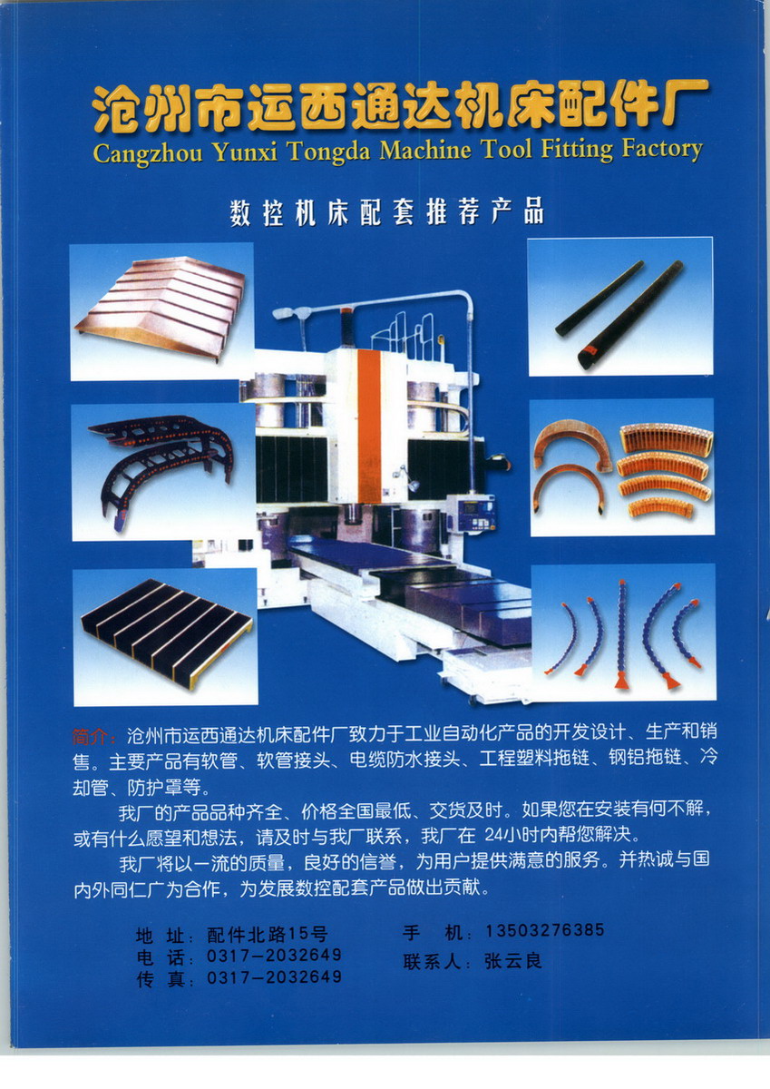 刮屑板,风琴式防护罩,钢制拖链,专业生产厂-沧州市运西通达机床配件厂致力于工业自动化产品的 开发设计、生产和销售。我们的产品包括:机床防护罩系列:包括钢板式机床防护罩、不锈钢板机床防护罩、柔性机床防护罩、风琴式防护罩(又名皮老虎)、伸缩式丝杠护罩又名圆罩、圆筒式防护罩、螺旋钢带保护套、卷帘防护罩、防护帘、防尘折布;机床拖链系列:包括钢制拖链又叫钢铝拖链、塑料拖链(工程拖链、尼龙拖链);排屑机系列:包括链板式排屑机、刮板式排屑机、磁性排屑机、螺旋式排屑机、复合式排屑机等机床排屑机类型;机床工作灯(JY20、JY37、JL系列、JB系列);其他机床附件:垫铁、JR-2型矩形金属软管、DGT导管保护套、可调塑料冷却管、防爆管、通风管、吸尘管、行程槽、撞块等五个机床附件系列及各种操作件(手轮、把手等)。我厂集国内外高新技术之精华,聚一大批科技人才之智慧,管理科学规范,并以先进的技术,合理的价格,及时的交货,完善的售后服务赢得了广大用户的高度赞誉。我厂依靠科技开发产品,使企业充满活力,用户遍布全国各地。我们致力于开拓创新、不断改造完善,为用 户提供最好,更好的现代化新产品,并通过完善的售后服务来满足您的愿望和需要,欢迎各单位选用我厂生产的 系列产品,我们愿于您忠诚合作,共同发展。我公司的产品品种齐全、价格全国最低、交货及时。如果您在安装有何不解,或有什么愿望和想法,请及时与我公司联系,我公司在24小时内帮您解决.我公司将以一流的质量,良好的信誉,为用户提供满意的服务。