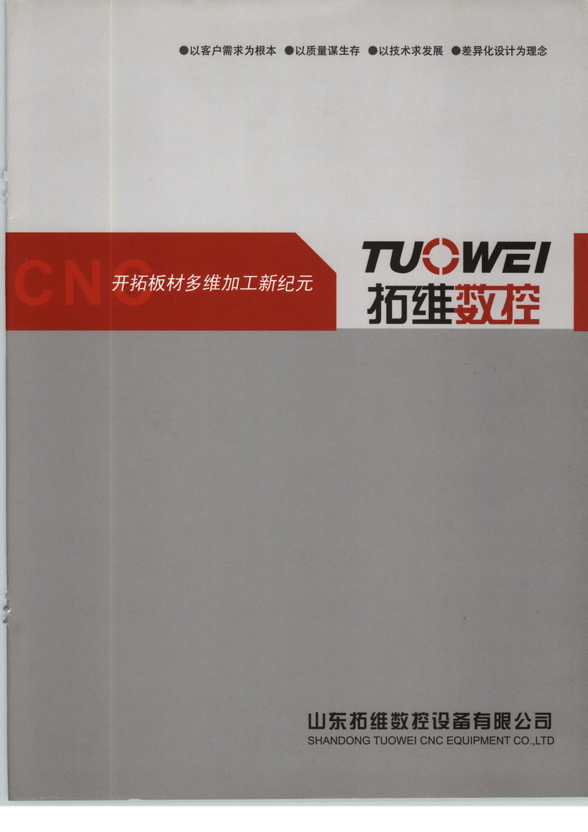 山东拓维数控设备有限公司坐落于美丽泉城之都——济南,是国内知名专业金属中厚板材加工设备制造商。公司主要从事机电液一体化,功能复合、一机多用的数控设备设计和制造。公司自成立以来就快速跟踪国际新技术,不断创新,用信息技术提升研发制造能力。公司的数控机械及数控板材加工设备产品,广泛应用到全球汽车运输、电力、智能立体车库、桥梁模板钢结构、石油机械、化工机械、纺织机械、压力容器等多种行业。其中多项产品已经申请国家专利,获得多项国家专利奖。这些奖项不仅代表山东拓维数控技术的领先,更填补了我国在中厚板材加工方面的空白,大大提高了工业的装备能力。本公司主要产品包括COMP系列数控平板冲床、COMPC数控冲割复合机、COMPW数控U型纵梁腹板冲床、数控U型纵梁翼面孔标记设备、桥箱梁钢模板成套加工生产线、智能立体车库边梁生产线、COMPK数控开式平板冲床、COMPKC系列数控冲孔生产线、COMPUT数控U型纵梁三面冲生产线、汽车纵梁数控等离子切割生产线、压力机辅助自动化设备。为确保设备的可靠性和稳定性,公司产品所选用的主要元器件全部采用进口,如数控系统、伺服电机、直线导轨、滚珠丝杠、液压元器件、液压系统、气动元器件等。售后服务可采用远程诊断、网络连线解决电器故障,公司承诺的24小时快速响应服务,大大方便了产品的使用和售后服务。除上述产品外,我公司还可依据客户要求,设计、制造各种专用数控设备和自动流水生产线。公司技术力量雄厚,技术人员90%以上具有本科以上学历,具有主管设计、生产、安装调试数控机械设备和生产线的经验,是一支优秀工程技术人员队伍。