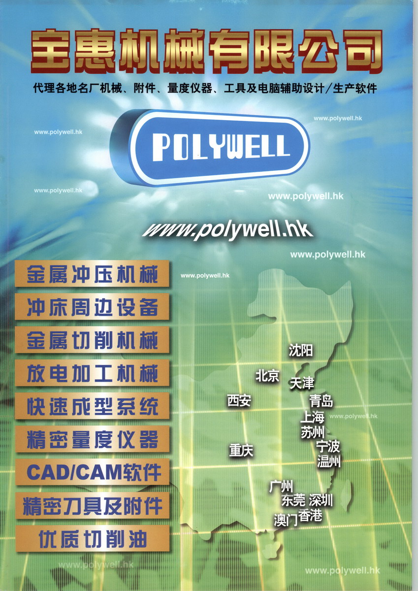 宝惠机械有限公司成立于一九九零年,主要代理机械业务。 为配合本地工业对高质素高精度机床产品的要求, 公司从世界各地引进各种精良电脑数控机械,包括模具设备 (如加工中心、火花机、线切割机、磨床等等)、钣金设备 (激光切割机、液压转塔冲床、液压弯板机等等)、车床设备 (车削中心 、传统车床等等) 及特殊机械设备 (齿轮加工机、快速成型系统等等)。 八十年代中国开始实施经济开放政策,为节省生产成本,越来越多的本地厂家北移及扩充规模,基于此种发展趋势,公司在东莞设立维修服务中心,向客户提供快捷的维修服务,现时维修服务部有员工超过150人(香港及国内),各服务工程师均经过严格训练并分为不同组别,以保证专业服务的质素。 现今科技日新月异,机械行业亦向高科技精密产品发展。「宝惠」即时把握机会, 引入激光切割机、等离子切割机、镭射雕刻机及快速成形系统等先进机械,令产品更加多元化。为掌握行业动向及最新生产技术,「宝惠」的资深工程师经常参观国外之机械展览会,以适时引进先进机械设备,保持与世界机械工业的同步发展。 「宝惠」之宗旨是向客户提供一站式服务,除协助客户选购高质素及合适之机械外,更向客户提供有关配套设备 (包括机床附件、刀具系统、电脑软件、售前及售后服务),其中先进科技部,专责为客户提供电脑辅助设计软件、立体激光扫描系统及三座标测量机等高科技产品以及相关专业训练课程。 为满足中国客户对精密先进机械不断增长之需求,「宝惠」分别在北京、上海、重庆、广州、西安及渖阳等国内重要城市设立办事处,藉此向国内客户介绍先进机械及协助客户更新改造现有设备。 为向客户介绍最新型机械及先进生产技术,公司每年必参加本地及国内十多个机械展览,并于陈列室举行的大型展销会及研讨会,提供客户与制造商直接交流的机会,此外,公司按时举办先进机械考察团、在各种工业杂志及报纸刊登广告、印制公司资讯,加强客户对公司产品的了解和信心。 「宝惠」之目标是 “立志成为中国及香港机械行业最优质服务的提供者”。 公司将不断引入先进技术及精密机械,提供优质完善服务,与时并进,与客户共同发展。