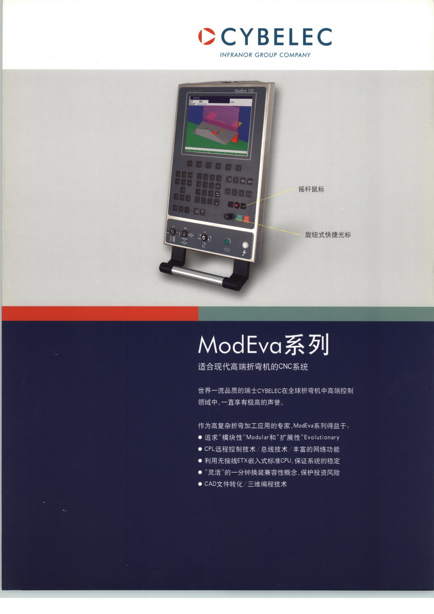 瑞士CYBELEC公司,成立于1970年,是一家专业开发钣金数控系统并在该领域享誉全球的领头羊企业。从1970年开始,CYBELEC公司开发出全世界第一台折弯机用数控系统,1978年推出了具有划时代意义的世界第一台通过微处理器控制的DNC系统,使数控折弯机从真正意义上实现了电液同步。直到今天,这种电液同步技术仍然作为一种标准模式被该行业所有机床制造商所采用。瑞士CYBELEC公司技术领先,实力雄厚,并不断在技术上创新,为当今世界锻压数控自动化做出了重要贡献。35年以来,在全球已累计生产销售40000多套CYBELEC数控系统。其产品主要面向:折弯机,折板机,剪板机,深拉深机,弯管机,柔性剪/折生产线.为更好的满足中国客户对CYBELEC产品的需求,提供及时、周到的售前售后服务和技术支持,并于2003年成立瑞士赛博克有限公司上海代表处,通过直销模式以及本地供货和本地技术支持体系,让您百分百的放心。CYBELEC上海代表处主要业务范围包括:-瑞士CYBELEC数控系统,电机伺服系统及光栅尺的销售-维修、技术咨询及技术服务(产品的安装,调试,使用培训和售后服务跟踪;提供系统升级,备件,增加功能和零件更换服务)-从事数控机床改造等。